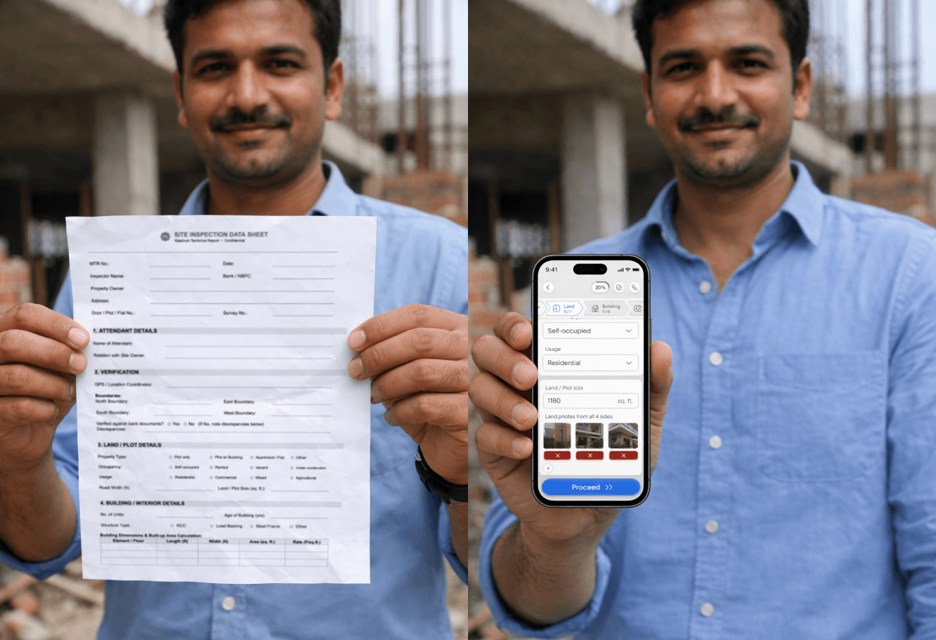 The redundant data-entry step was completely eliminated. Back-office teams received structured, geo-tagged, time-stamped data sets ready for final valuation — no more deciphering handwriting or hunting through WhatsApp threads.